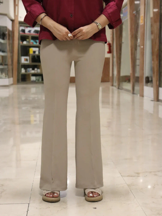 شلوار کرپ با طراحی بوتکات و پارچه ترک و کمرکش مخفی، دارای کشسانی و دوخت مزونی در رنگهای مشکی، سورمه ای و نسکافه ای