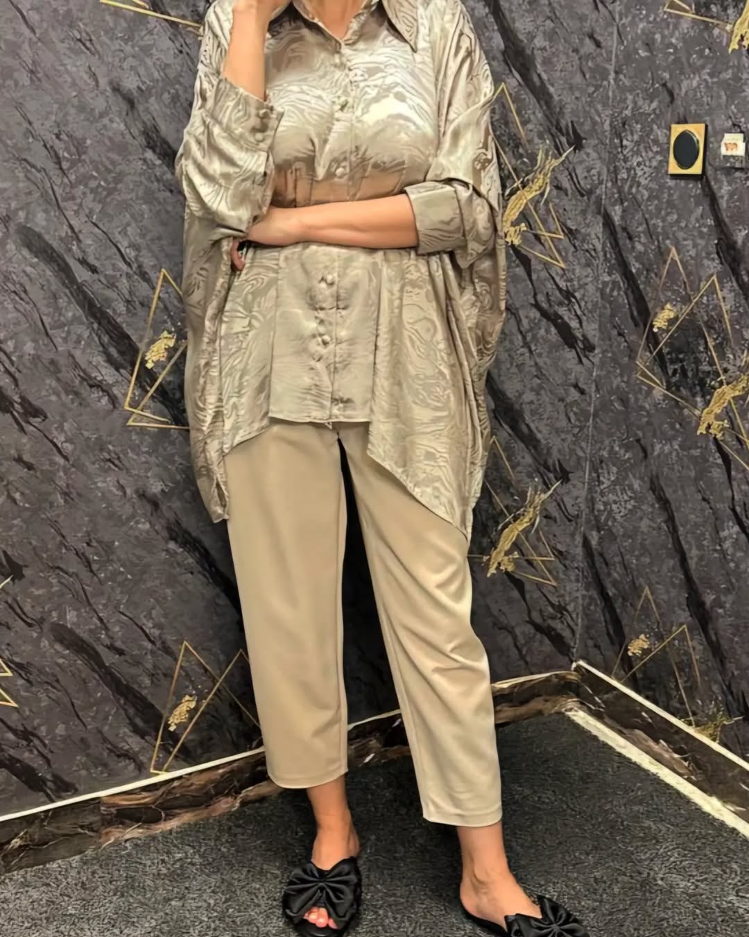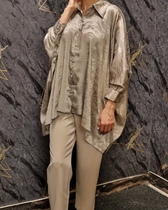 شومیز با جنس ساتن ژاکارد بسیار سبک و لطیف، قد ۷۰ و در رنگ بندی مطابق تصویر.