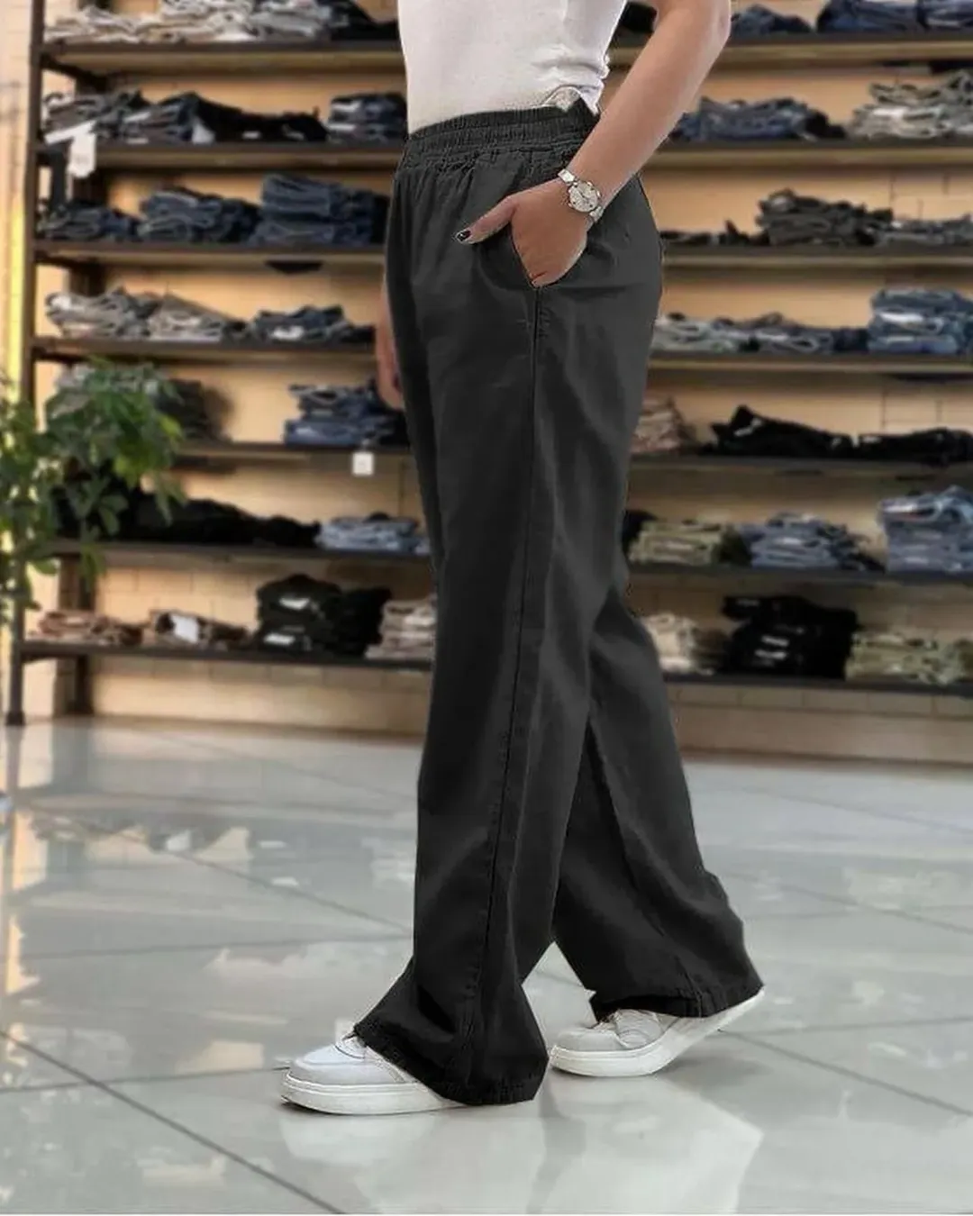 شلوار لینن نیم بگ بدون آبرفت مشکی و کرم سایز 34تا 48